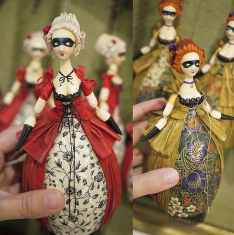 все желающие сделать подобную куколку на подвесе (нарядное елочное украшение) могут принять участие в занятии онлайн. В первых публикациях расскажу какие нужно подготовить материалы и инструменты (ничего сложного, уверенна, всем все доступно в домашних условиях. Для лепной части подойдёт любой самозастываемый, например, paperclay или la-doll ) и 5 октября начну изготавливать куколку и постепенно публиковать. Думаю, что все, кто начнут делать куколку параллельно со мной, закончат свою работу до конца октября, а может и немного раньше. Помню, что на занятии в мастерской некоторые девочки делали сразу две куколки, вы тоже так сможете. Загадочная красотка хороша тем, что ее легко тиражировать. В тоже время, каждая будет неповторима, если применять разные сочетания тканей в костюме и прическе. «Бал-Карнавал» это ощущение сказочного праздника и удовольствие творчества